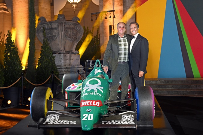 November 13, 2025, Rome. Sky presents the premiere of the documentary film Benetton Formula. Pictured is Gerhard Berger, former Formula 1 driver, with Alessandro Benetton., Credit:/AGF / Avalon