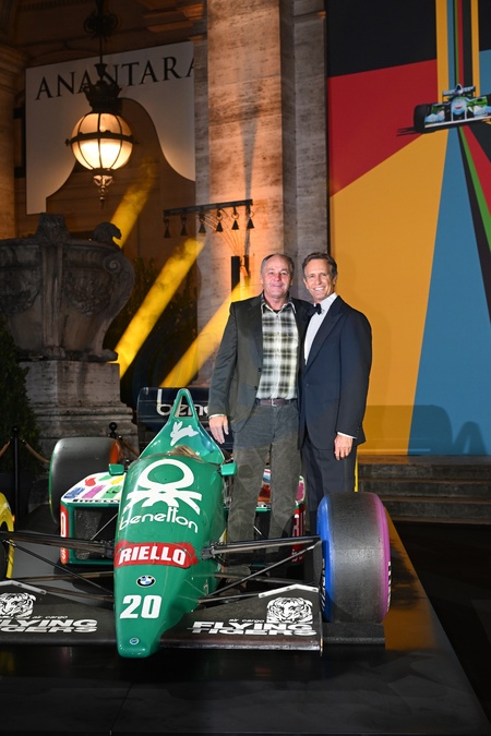 November 13, 2025, Rome. Sky presents the premiere of the documentary film Benetton Formula. Pictured is Gerhard Berger, former Formula 1 driver, with Alessandro Benetton., Credit:/AGF / Avalon