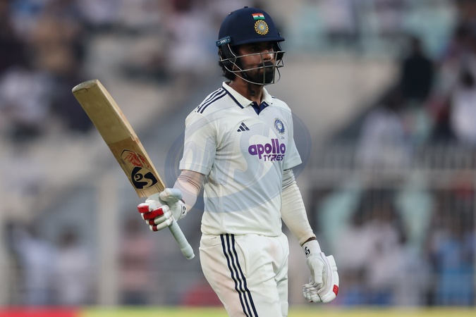 Washington Sundar of India and KL Rahul of India raises the bat after finishing the day 1 during the IDFC First Bank Test match day 1 India vs South Africa at Eden Gardens, Kolkata, India, 14th November 2025(, Credit:Shubhajit Roy Karmakar/News Images / Avalon