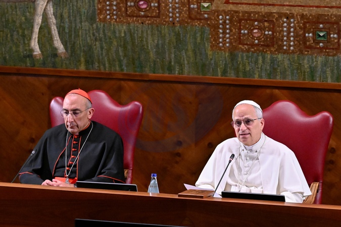 14/11/2025 Città del Vaticano, inaugurazione del 253° anno accademico dalla Pontificia Università Lateranense. Nella foto Papa Leone XIV con il Gran Cancelliere Cardinale Baldassare Reina, Credit:Maria Laura Antonelli / Avalon