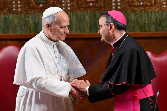 14/11/2025 Città del Vaticano, inaugurazione del 253° anno accademico dalla Pontificia Università Lateranense. Nella foto Papa Leone XIV con e il Rettore Magnifico Alfonso Vincenzo Amarante, Credit:Maria Laura Antonelli / Avalon