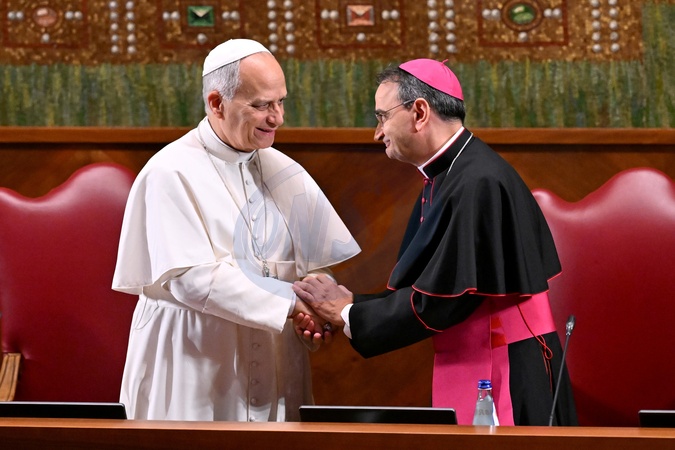 14/11/2025 Città del Vaticano, inaugurazione del 253° anno accademico dalla Pontificia Università Lateranense. Nella foto Papa Leone XIV con e il Rettore Magnifico Alfonso Vincenzo Amarante, Credit:Maria Laura Antonelli / Avalon