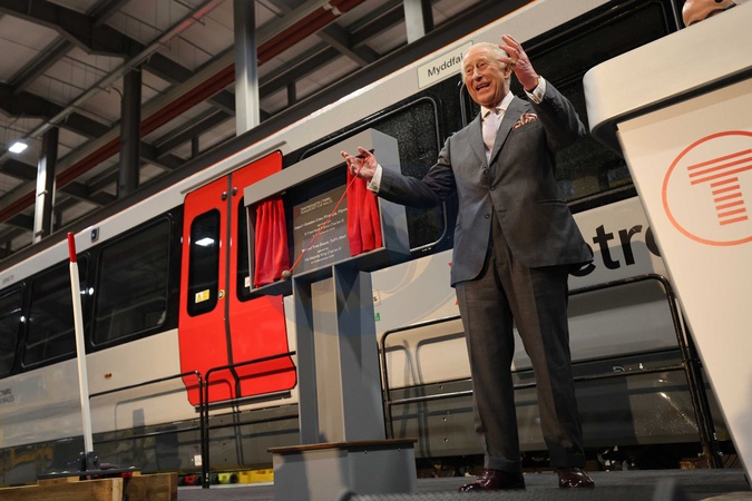 Britain's King Charles III reacts as he unveils a plaque to officially open the South Wales Metro Depot in the South Wales town of Taff's Well on November 14, 2025, as the king marks his 77th birthday., Credit:ADRIAN DENNIS / Avalon