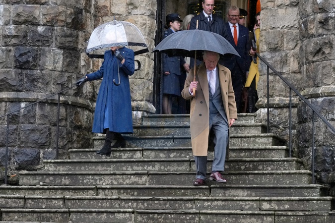Britain's King Charles III and Queen Camilla leave after joining a celebratory reception marking Cyfarthfa Castle's 200th anniversary and the King's birthday in Merthyr Tydfil, Wales, Friday, Nov. 14, 2025., Credit:Kin Cheung / Avalon