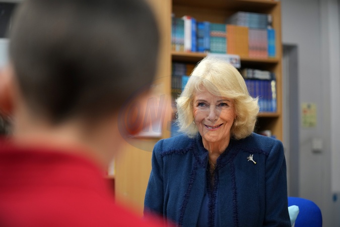 Britain's Queen Camilla listens to students as she visits Cyfarthfa Primary School to join pupils taking part in a guided reading programme and attends a school assembly in Merthyr Tydfil, Wales, Friday, Nov. 14, 2025., Credit:Kin Cheung / Avalon