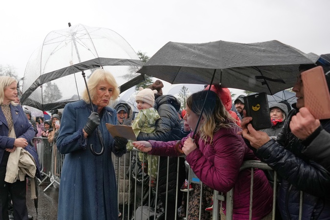 Britain's Queen Camilla speaks to members of the public as she visits Cyfarthfa Primary School to join pupils taking part in a guided reading programme and attends a school assembly in Merthyr Tydfil, Wales, Friday, Nov. 14, 2025., Credit:Kin Cheung / Avalon