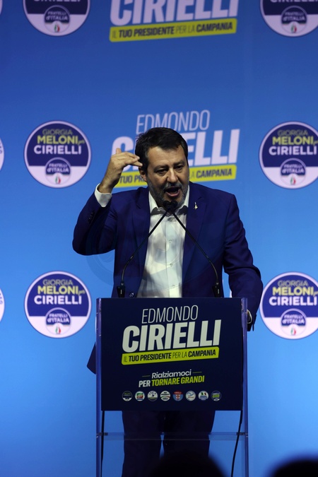 Closure of the center-right electoral campaign for the regional elections in Campania, in the photo, the Minister of Transport, Matteo Salvini . Naples, Italy 14 November 2025, Credit:Fabio Sasso / Avalon