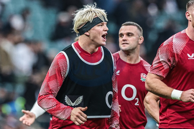Henry Pollock of England in the pre-game warm up during the Quilter Nations Series 2025 match England vs New Zealand at Allianz Stadium, Twickenham, United Kingdom, 15th November 2025, Credit:Mark Cosgrove/News Images / Avalon