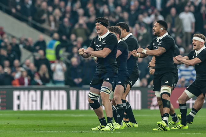 New Zealand perform the Haka before the game during the Quilter Nations Series 2025 match England vs New Zealand at Allianz Stadium, Twickenham, United Kingdom, 15th November 2025, Credit:Mark Cosgrove/News Images / Avalon