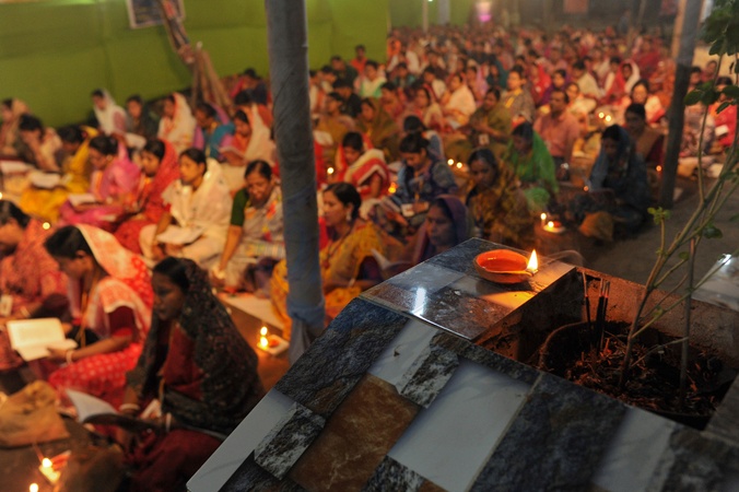 Chattogram, Bangladesh: Hindu devotees light candles and pray at the Shri Shri Lokanath Brahmachar Ashram temple during the Rakher Upobash festival in Chattogram,Bangladesh. The festival, which involves fasting and praying for divine favor, honors the 18th-century Hindu saint and philosopher Lokenath Brahmachari, also known as Baba Lokenath., Credit:Md Rafayat Haque Khan / Avalon
