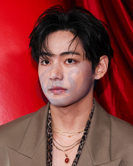 LOS ANGELES, CALIFORNIA, USA - NOVEMBER 14: South Korean singer, songwriter, dancer, producer, director, and actor V (Kim Taehyung) of South Korean boy band BTS arrives at the TirTir 'Radiate In Red' Pop-Up Experience Launch held at 8175 Melrose Avenue on November 14, 2025 in Los Angeles, California, United States., Credit:Kay Qiao / Avalon