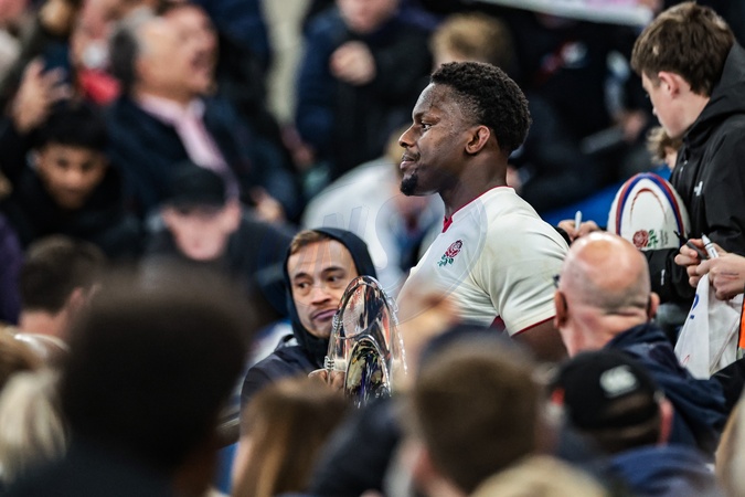 Mario Itoje of England with the Hillary Shield after the game during the Quilter Nations Series 2025 match England vs New Zealand at Allianz Stadium, Twickenham, United Kingdom, 15th November 2025, Credit:Mark Cosgrove/News Images / Avalon