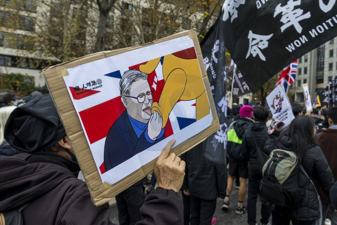 A protest was held outside the Royal Mint in London opposing the construction of China's planned new mega embassy. The demonstration was organised by Hong Kong expatriates, Chinese dissidents, and human rights activists who accused the Chinese government of increasing authoritarian influence abroad. Protesters rallied with banners, flags, and speeches condemning the Chinese Communist Party's human rights violations and warning that the embassy project would expand Beijing's surveillance and intimidation of dissidents in the UK., Credit:Zak Irfan / Avalon