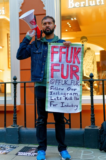 Saturday 15 November. Anti fur Animal cruelty protest by the group ffuk_fur outside Berluti 43 Conduit Street, London, Credit:Aldo Ciarrocchi / Avalon