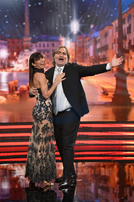Rai1. Television program Dancing with the Stars, twentieth edition. Pictured are journalist Pierluigi Pardo and Sara di Vaira, dancing for one night. Rome, Nov 15th 2025, Credit:Maria Laura Antonelli / Avalon
