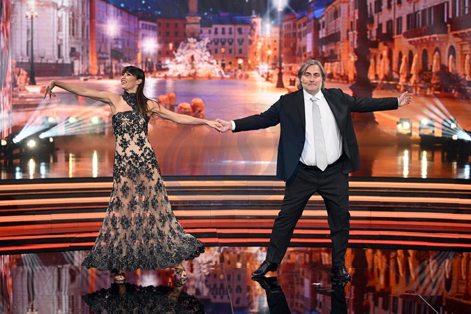 Rai1. Television program Dancing with the Stars, twentieth edition. Pictured are journalist Pierluigi Pardo and Sara di Vaira, dancing for one night. Rome, Nov 15th 2025, Credit:Maria Laura Antonelli / Avalon