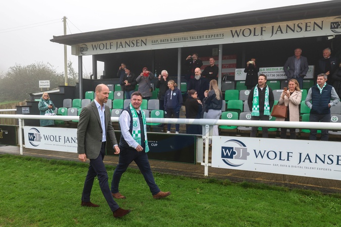 13/11/2025. Penzance, UK. The Duke of Cornwall Opens New Road at Mousehole FC. The Duke of Cornwall opens a new access road for Mousehole Association Football Club (AFC) during a visit to Cornwall. His Royal Highness viewed the completed road and met the partners who made it happen. The Duke then met members of the community inside the football club before meeting players from the youth and adult teams taking part in training on the pitch and heard about the difference the new road has made., Credit:Andrew Parsons/Kensington Palace / Avalon