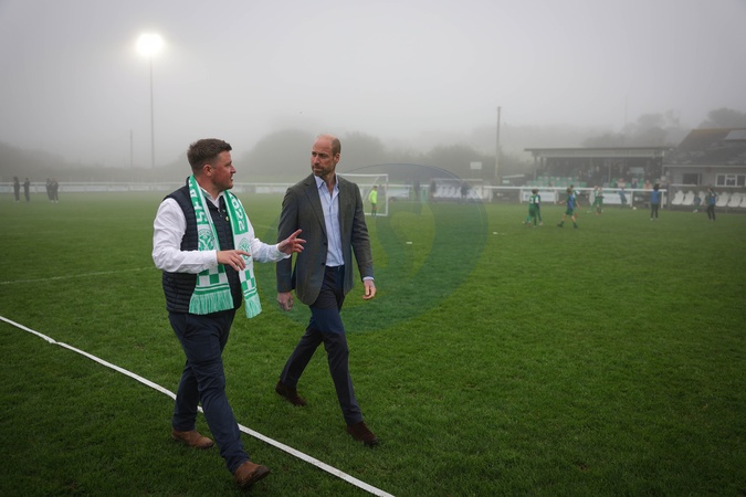 13/11/2025. Penzance, UK. The Duke of Cornwall Opens New Road at Mousehole FC. The Duke of Cornwall opens a new access road for Mousehole Association Football Club (AFC) during a visit to Cornwall. His Royal Highness viewed the completed road and met the partners who made it happen. The Duke then met members of the community inside the football club before meeting players from the youth and adult teams taking part in training on the pitch and heard about the difference the new road has made., Credit:Andrew Parsons/Kensington Palace / Avalon