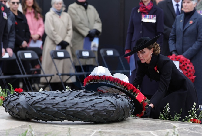 11/11/2025. Burton-on-Trent, UK. The Princess of Wales during a visit to the National Memorial Arboretum as it leads the nation in commemorating Armistice Day with a Service of Remembrance on the Armed Forces Memorial. Her Royal Highness joined attendees in observing the two-minute silence at 11am before laying a wreath in remembrance of those who have made the ultimate sacrifice and all those who have served in the Armed Forces. The Princess then met a group of secondary school students from military families, whose parents are currently on deployment, to reflect the often unseen, but important contribution of Service families. Finally, Her Royal Highness had the opportunity to view a special exhibition currently on display at the Arboretum, Letters from the Frontline – Words, War and Victory., Credit:Andrew Parsons/Kensington Palace / Avalon