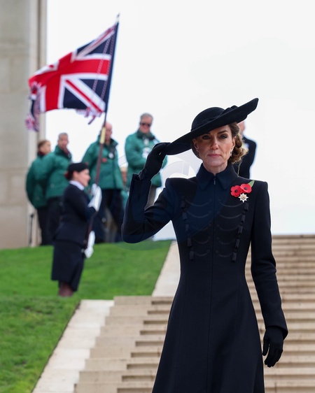 11/11/2025. Burton-on-Trent, UK. The Princess of Wales during a visit to the National Memorial Arboretum as it leads the nation in commemorating Armistice Day with a Service of Remembrance on the Armed Forces Memorial. Her Royal Highness joined attendees in observing the two-minute silence at 11am before laying a wreath in remembrance of those who have made the ultimate sacrifice and all those who have served in the Armed Forces. The Princess then met a group of secondary school students from military families, whose parents are currently on deployment, to reflect the often unseen, but important contribution of Service families. Finally, Her Royal Highness had the opportunity to view a special exhibition currently on display at the Arboretum, Letters from the Frontline – Words, War and Victory., Credit:Andrew Parsons/Kensington Palace / Avalon
