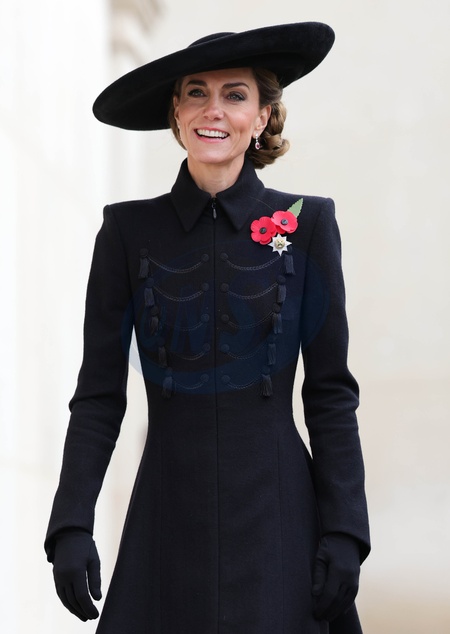 11/11/2025. Burton-on-Trent, UK. The Princess of Wales during a visit to the National Memorial Arboretum as it leads the nation in commemorating Armistice Day with a Service of Remembrance on the Armed Forces Memorial. Her Royal Highness joined attendees in observing the two-minute silence at 11am before laying a wreath in remembrance of those who have made the ultimate sacrifice and all those who have served in the Armed Forces. The Princess then met a group of secondary school students from military families, whose parents are currently on deployment, to reflect the often unseen, but important contribution of Service families. Finally, Her Royal Highness had the opportunity to view a special exhibition currently on display at the Arboretum, Letters from the Frontline – Words, War and Victory., Credit:Andrew Parsons/Kensington Palace / Avalon