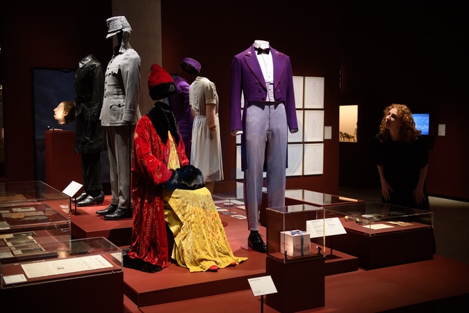 A staff member views Costumes from The Grand Budapest Hotel including a Monsieur Gustave Concierge Uniform worn by Ralph Fiennes, Agatha Costume worn by Saoirse Ronan at a photocall for The Design Museum's 'Wes Anderson: The Archives' Exhibition at The Design Museum in London, England, UK on Monday 17 November 2025. The exhibition runs from 21 November 2025 - 26 July 2026., Credit:Justin Ng / Avalon