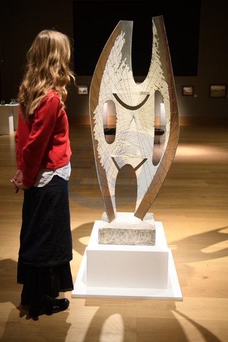 A staff member views 'Winged Figure' by Dame Barbara Hepworth (est. £800k - £1.2m) Conceived in 1957 and fabricated in 1963, this work is number 2 from the edition of 3 which is to go on auction at Bonhams' Modern British and Irish Art Sale on 19th November 2025 at Bonhams in London, England, UK on Monday 17 November, 2025., Credit:Justin Ng / Avalon