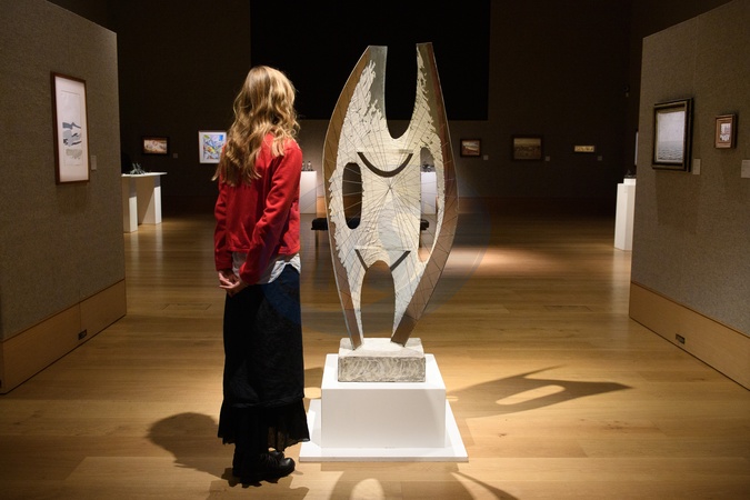 A staff member views 'Winged Figure' by Dame Barbara Hepworth (est. £800k - £1.2m) Conceived in 1957 and fabricated in 1963, this work is number 2 from the edition of 3 which is to go on auction at Bonhams' Modern British and Irish Art Sale on 19th November 2025 at Bonhams in London, England, UK on Monday 17 November, 2025., Credit:Justin Ng / Avalon