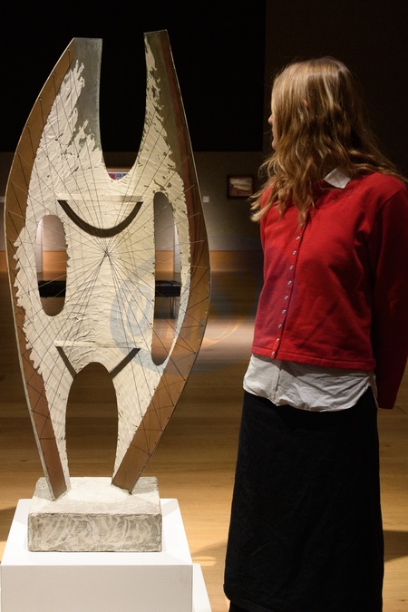 A staff member views 'Winged Figure' by Dame Barbara Hepworth (est. £800k - £1.2m) Conceived in 1957 and fabricated in 1963, this work is number 2 from the edition of 3 which is to go on auction at Bonhams' Modern British and Irish Art Sale on 19th November 2025 at Bonhams in London, England, UK on Monday 17 November, 2025., Credit:Justin Ng / Avalon