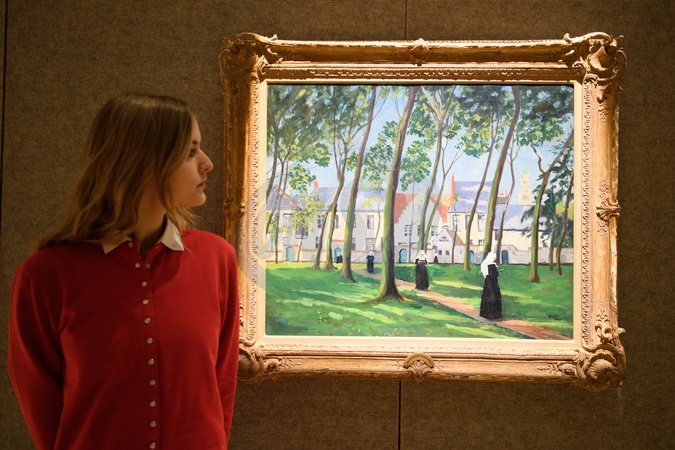 A staff member views 'Le Béguinage, Bruges' by Sir Winston Churchill (est. £300k - £500k) which is to go on auction at Bonhams' Modern British and Irish Art Sale on 19th November 2025 at Bonhams in London, England, UK on Monday 17 November, 2025., Credit:Justin Ng / Avalon