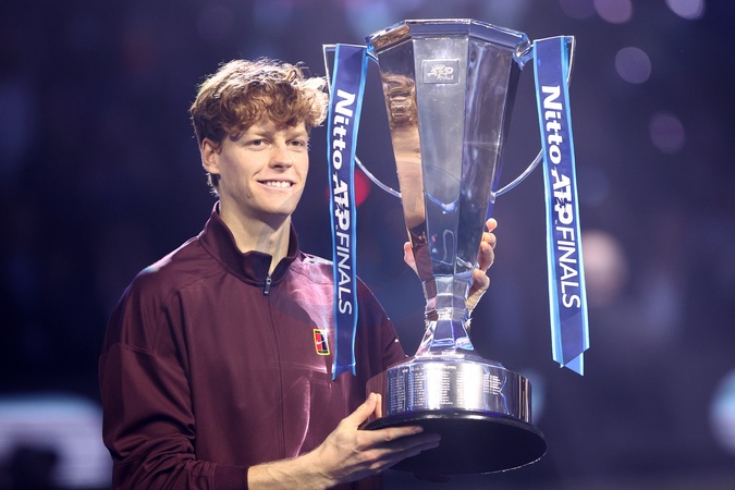 Nitto ATP Finals, Jannik Sinner wins the final against Alcaraz, pictured with the cup in Turin Nov 16th 2025, Credit:Marco Canoniero / Avalon