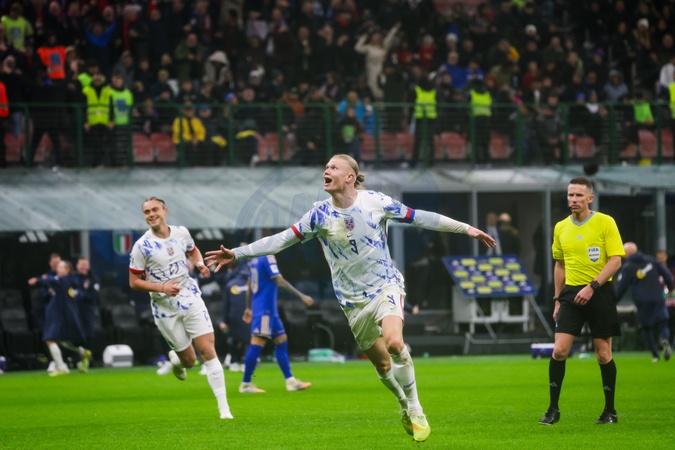 World Cup Qualifiers, Group I, Italy vs. Norway. Pictured: Goal by Erling Haaland (Norway). in Milan Nov 16th 2025, Credit:Fabio Sasso / Avalon