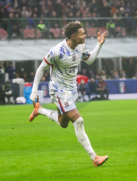 World Cup Qualifiers, Group I, Italy vs. Norway. Pictured: Goal by Antonio Nusa (Norway). in Milan Nov 16th 2025, Credit:Fabio Sasso / Avalon