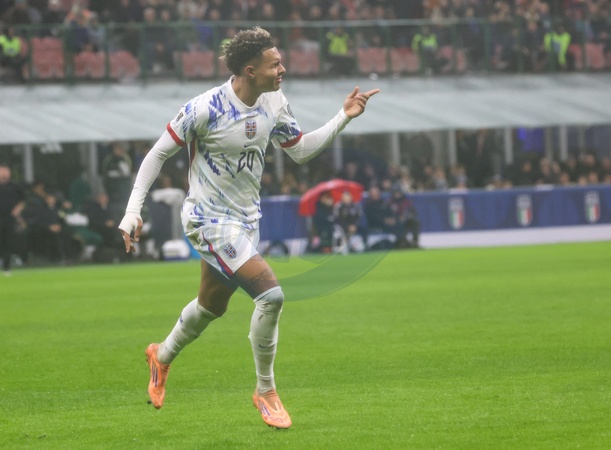 World Cup Qualifiers, Group I, Italy vs. Norway. Pictured: Goal by Antonio Nusa (Norway). in Milan Nov 16th 2025, Credit:Fabio Sasso / Avalon