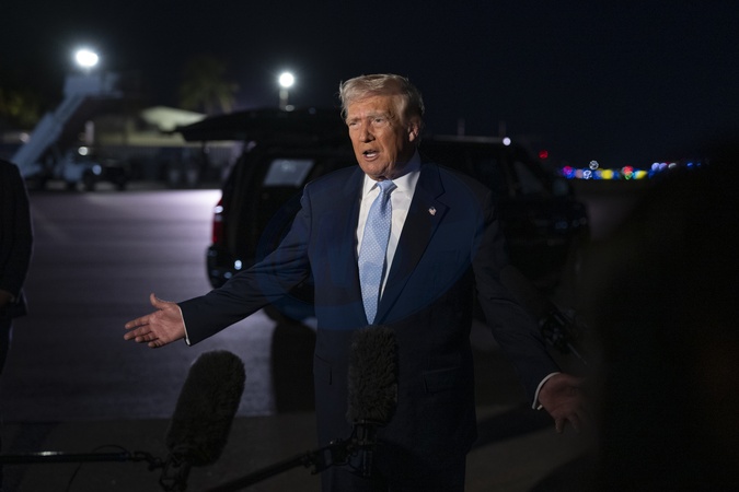 President Donald Trump speaks to the press before boarding Air Force One at Palm Beach International Airport in West Palm Beach, Florida on Sunday, November 16, 2025, en route Joint Base Andrews, Maryland, Credit:Molly Riley / Avalon