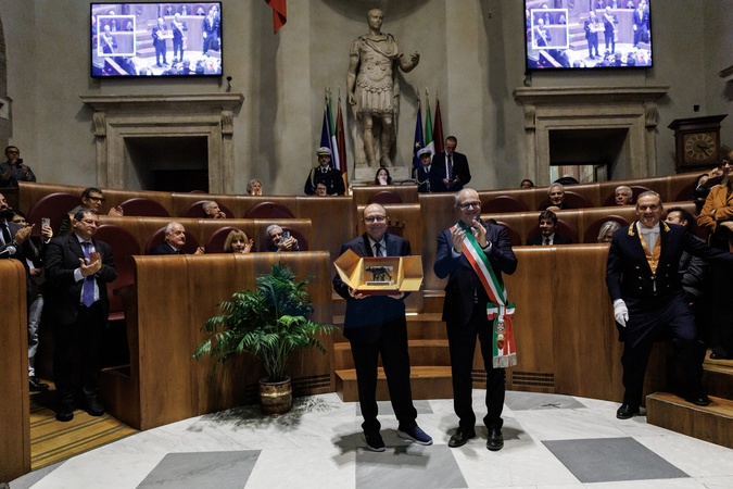 Carlo Verdone, Mayor for a Day. City Council meeting and presentation of the Capitoline Wolf.