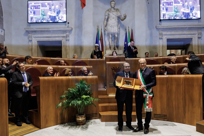 Carlo Verdone, Mayor for a Day. City Council meeting and presentation of the Capitoline Wolf.