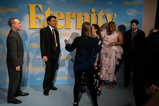 John Early, US actor Miles Teller, US actor Elizabeth Olsen, US actor Da'Vine Joy Randolph and Irish film director David Freyne attends the "Eternity" UK Premiere at The Cinema In The Power Station, Credit:Lounis Tiar / Avalon