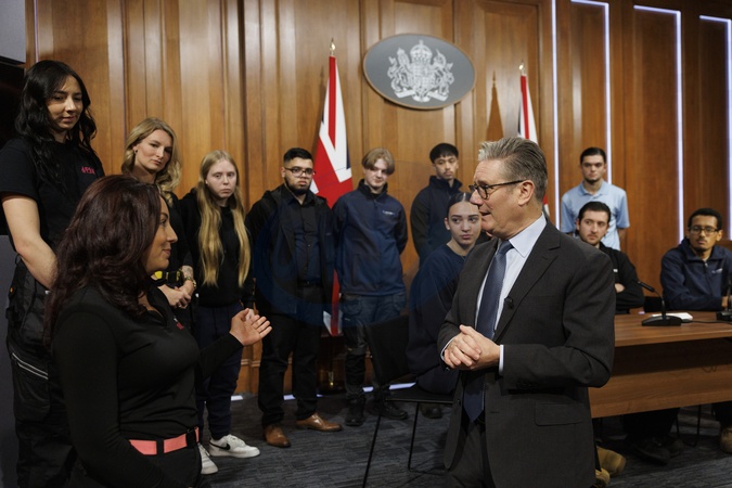 17/11/2025. London, United Kingdom. Prime Minister Keir Starmer meets apprentices in 9 Downing Street from technical excellence colleges to discuss their experiences and what the government is doing to encourage more apprenticeships ., Credit:Simon Dawson / Avalon