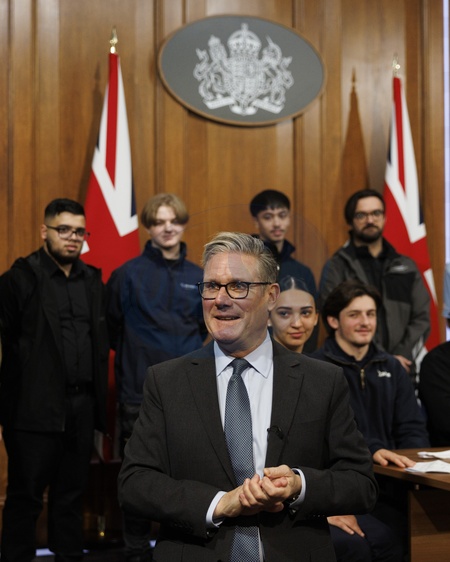 17/11/2025. London, United Kingdom. Prime Minister Keir Starmer meets apprentices in 9 Downing Street from technical excellence colleges to discuss their experiences and what the government is doing to encourage more apprenticeships ., Credit:Simon Dawson / Avalon