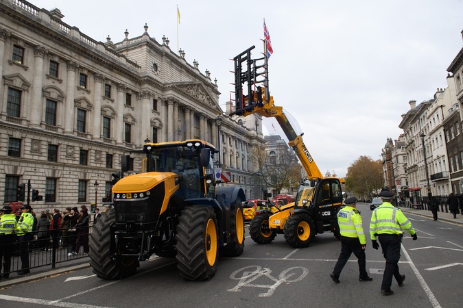 Farmers block the roads in Whitehall in London, England, UK on Tuesday 18 November, 2025 as part of a protest over changes to inheritance tax for farms., Credit:Justin Ng / Avalon