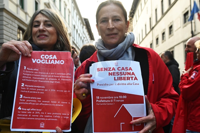 Flash mob demonstration by the Alliance for Housing, for the right to housing. Florence, Italy 18 November 2025, Credit:Aleandro Biagianti / Avalon