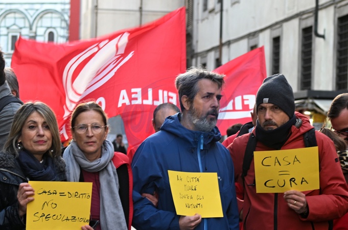 Flash mob demonstration by the Alliance for Housing, for the right to housing. Florence, Italy 18 November 2025, Credit:Aleandro Biagianti / Avalon