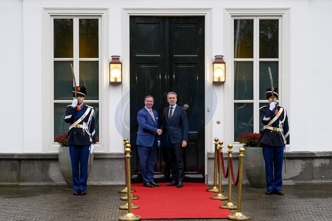 Den Haag, The Netherlands, 2025-11-19 10:07:47THE HAGUE, 19-11-2025, Catshuis. Prime Minister Dick Schoof receives Grand Duke Guillaume and Grand Duchess Stéphanie of Luxembourg at the Catshuis for a one-day visit. PHOTO: NLBeeld/Patrick van Emst, Credit:Avalon