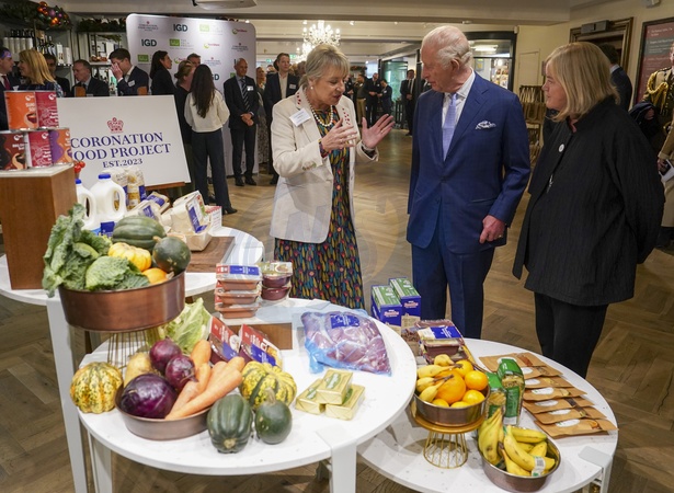His Majesty The King marked the second.anniversary of the Coronation Food Project, bringing together Chief Executives and senior.leaders from Alliance Food Sourcing - a collaborative group which is leading to systemic.change in the food production and retail sector, rescuing thousands of tonnes more food for.communities in need. Fortnum & Mason, 181 Piccadilly, London W1A. The King with Dame Martina Milburn and Dame Louise Casey, Credit:Avalon.red / Avalon