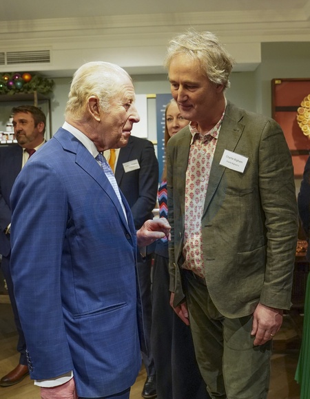 His Majesty The King marked the second.anniversary of the Coronation Food Project, bringing together Chief Executives and senior.leaders from Alliance Food Sourcing - a collaborative group which is leading to systemic.change in the food production and retail sector, rescuing thousands of tonnes more food for.communities in need. Fortnum & Mason, 181 Piccadilly, London W1A. The King with Charlie Bingham the ready food boss, Credit:Avalon.red / Avalon