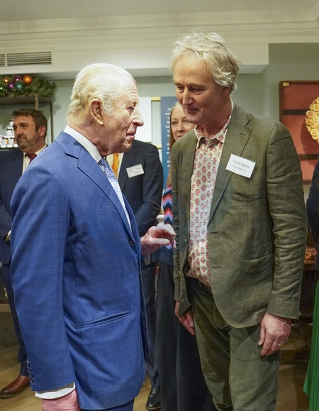 His Majesty The King marked the second.anniversary of the Coronation Food Project, bringing together Chief Executives and senior.leaders from Alliance Food Sourcing - a collaborative group which is leading to systemic.change in the food production and retail sector, rescuing thousands of tonnes more food for.communities in need. Fortnum & Mason, 181 Piccadilly, London W1A. The King with Charlie Bingham the ready food boss, Credit:Avalon.red / Avalon