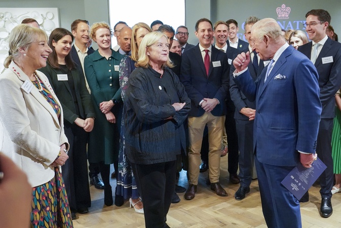 His Majesty The King marked the second.anniversary of the Coronation Food Project, bringing together Chief Executives and senior.leaders from Alliance Food Sourcing - a collaborative group which is leading to systemic.change in the food production and retail sector, rescuing thousands of tonnes more food for.communities in need. Fortnum & Mason, 181 Piccadilly, London W1A. The King shares a joke with Dame Louise Casey and Dame Martina Milburn, Credit:Avalon.red / Avalon