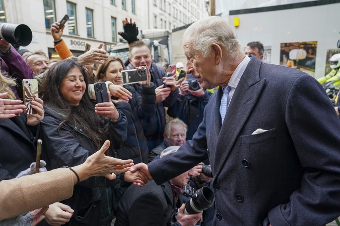 His Majesty The King marked the second.anniversary of the Coronation Food Project, bringing together Chief Executives and senior.leaders from Alliance Food Sourcing - a collaborative group which is leading to systemic.change in the food production and retail sector, rescuing thousands of tonnes more food for.communities in need. Fortnum & Mason, 181 Piccadilly, London W1A. The King meets the crowd outside Fortnums, Credit:Avalon.red / Avalon