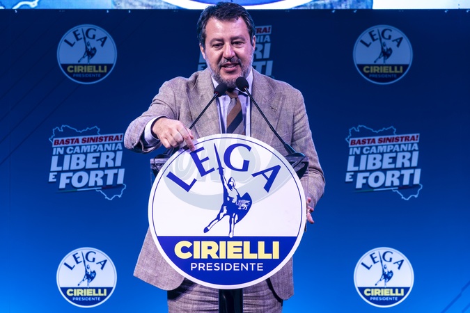 November 19, 2025, Naples, Infrastructure Minister Matteo Salvini at the Ricciardi Theater for the closing of the League's electoral campaign ahead of the regional elections., Credit:FPA/AGF / Avalon